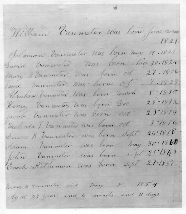 Henry Van Meter and Susannah {Teter -Teterig or Detrick} Van Meter bible