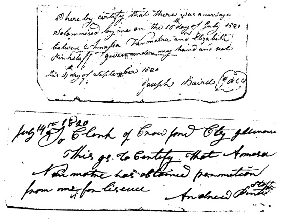 Amasa Vanmetre & Elizabeth Pinkstaff Marriage License