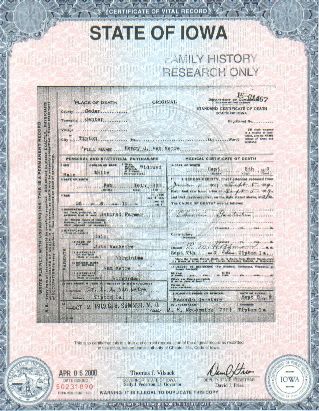 The material on the site is intended for free personal, non-commercial use. Commercial use of any of the materials presented on these pages is prohibited. Please do not consider any information on this site as a primary source, all data should be verified by you, the researcher. If you encounter any problems or have a question/correction, you can Email me at Scott Van Metre |